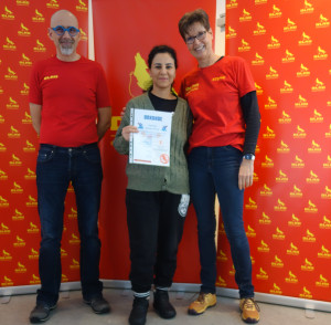 Besonders emotional war die Übergabe eines Seepferdchen-Abzeichens an eine erwachsene Teilnehmerin, die seit 2021 bei uns schwimmen lernt. Über mehrere Jahre hinweg arbeitete sie intensiv daran, ihre Ängste im Wasser zu überwinden und das mit Erfolg. Der Moment der Abzeichenübergabe war für alle Beteiligten bewegend und zeigt eindrucksvoll, wie wichtig geduldige Ausbildung und gegenseitige Unterstützung sind.